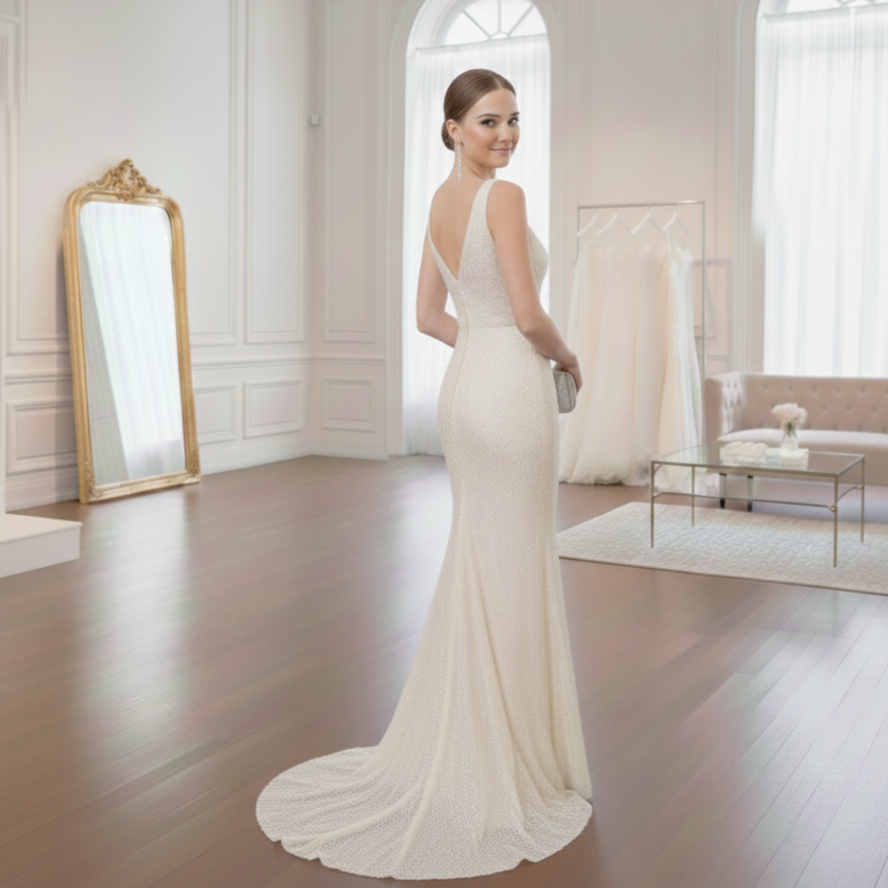 Muchas novias enfrentan la angustia de creer que un diseño sofisticado está fuera de su alcance económico o que deberán conformarse con una prenda de alquiler que no ajusta correctamente. Ciertamente, nuestro vestido de novia clásico y elegante soluciona este dilema al democratizar la alta costura con precios competitivos. Por esta razón, usted logra proyectar una imagen majestuosa con una cola sutil, eliminando la presión financiera y la inseguridad de usar un vestido que no fue creado para su cuerpo.