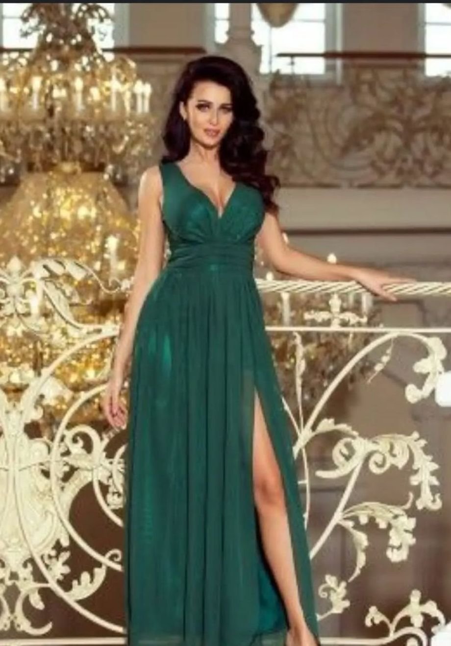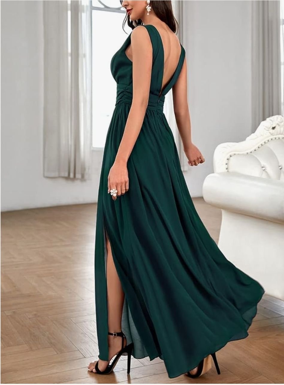 - Características: Vestido con abertura frontal, cuello en V profundo