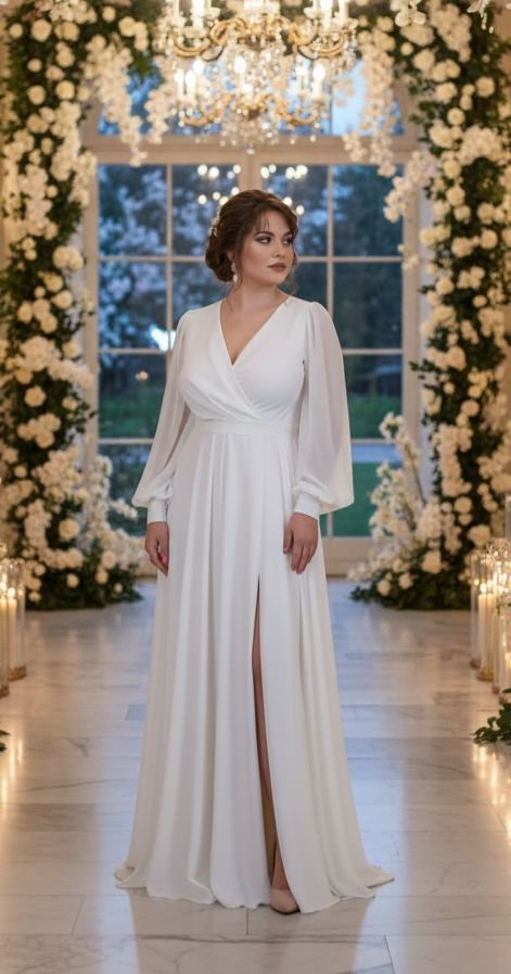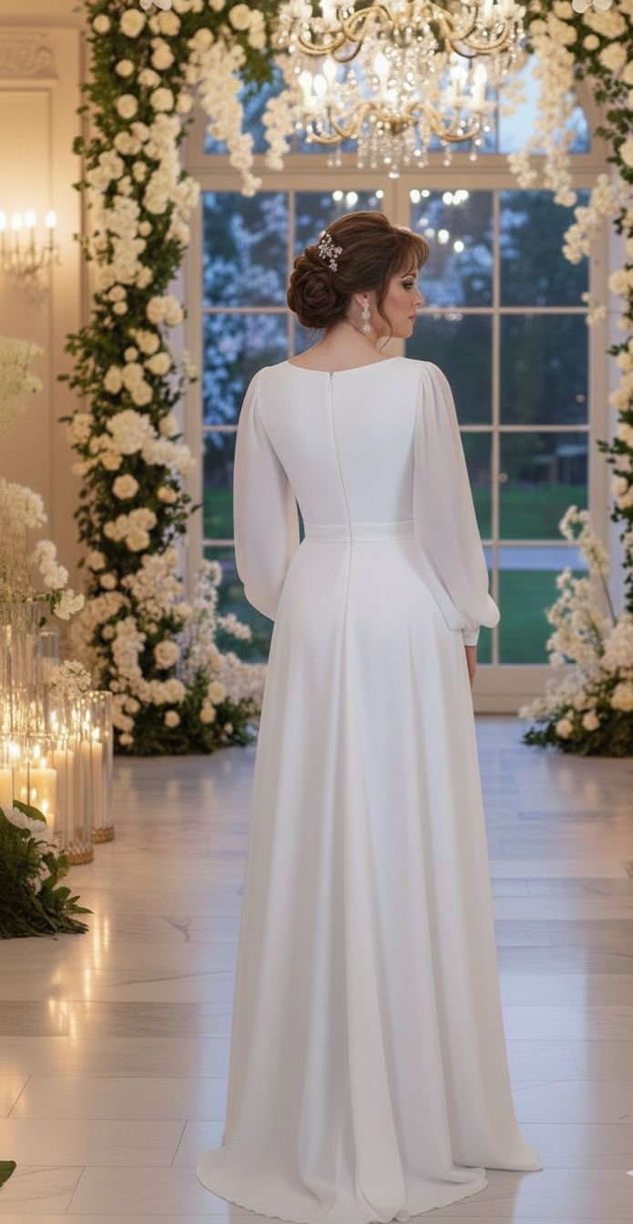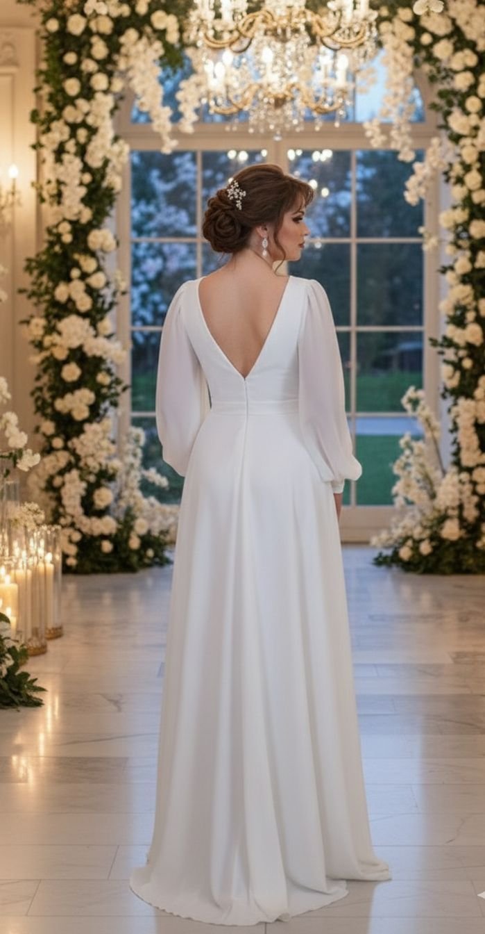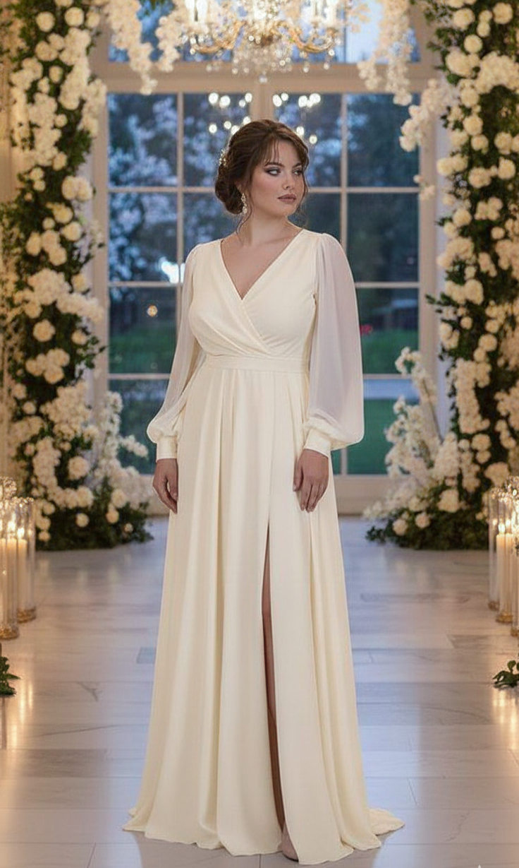 Ese día tan esperado merece un diseño que refleje toda esa luz interior. Este vestido para novia elegante combina la suavidad del velo licrado con una silueta que abraza la figura con total delicadeza. Las mangas largas en transparencia aportan un aire de romance y sofisticación ideal para una boda de ensueño. Cada detalle busca resaltar esa belleza única, logrando que el camino hacia el altar sea un momento lleno de encanto y magia.